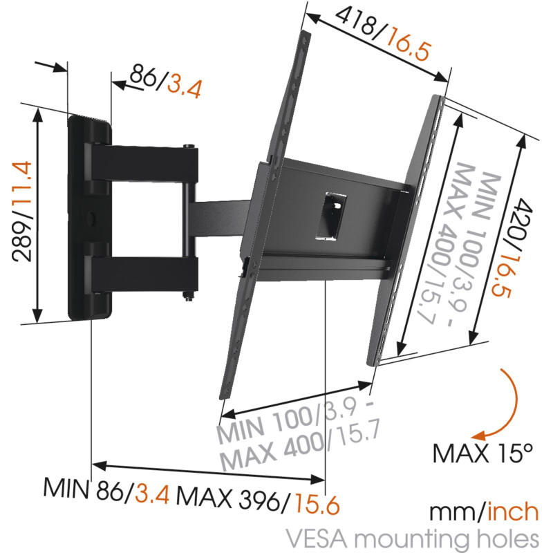 Vogels | Wall mount | MA3040-A1 | Full Motion | 32-65 " | Maximum weight (capacity) 25 kg | Black